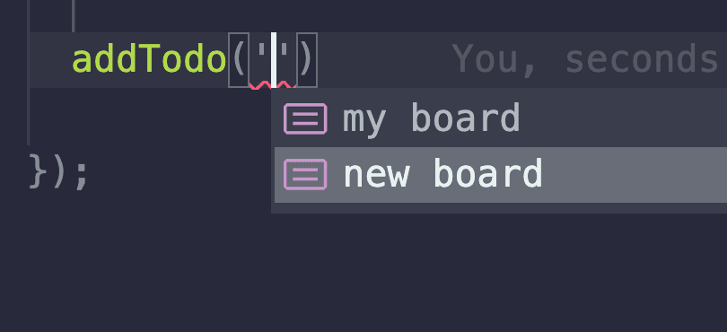 You might notice, looking at the code, that I left my .addBoard() function empty. Since I did not input any text, my test would fail. My app does not allow creating a board with empty name. Let’s now simply switch the extension name from .js to .ts and see what happens in our text editor.